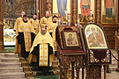 В нашей епархии мощи будут пребывать с 17 ноября до 22 декабря. Встреча мощей в нашем соборе состоится 17 ноября, проводы святыни - 19 ноября. В эти дни будут совершаться молебны.9 ноября глава Нижегородской митрополии совершил Божественную литургию в Александро-Невском кафедральном соборе