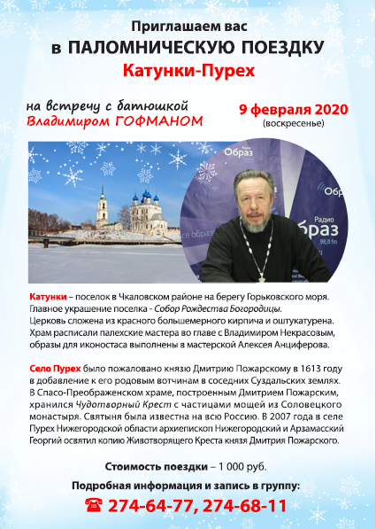 9 февраля состоится паломническая поездка Катунки-Пурех